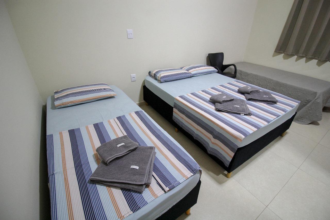 Ideal para quem viaja a casal ou em três pessoas. Amplo espaço com cama de casal e de solteiro, garantindo o conforto de todos em um ambiente seguro.
