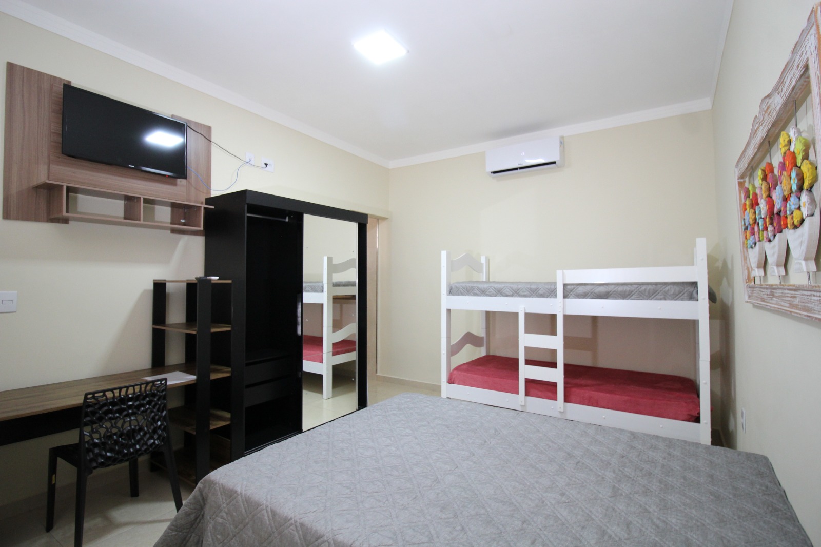 Praticidade e conforto na medida certa. Equipada com uma cama de casal, uma de solteiro e uma beliche, é perfeita para pequenos grupos ou famílias.